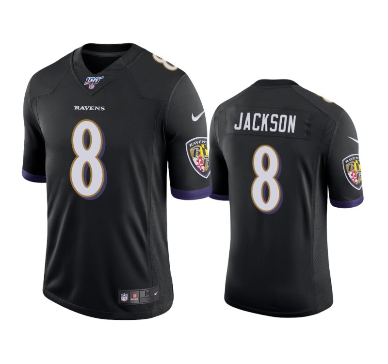 Get ready to celebrate 100th anniversary and keep your spirits high as you cheer on your team in this Men Baltimore Ravens #8 Lamar Jackson 100th Season Black Vapor Limited Jersey. The authentic look of this Nike jersey will be able to show off your fandom.