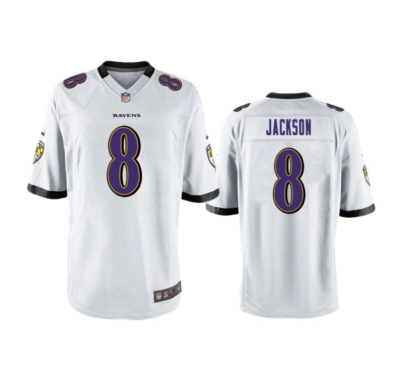 Men Baltimore Ravens #8 White Lamar Jackson Nike Game Jersey