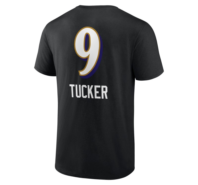 Justin Tucker Baltimore Ravens Team Wordmark Player Name & Number T-Shirt - Black