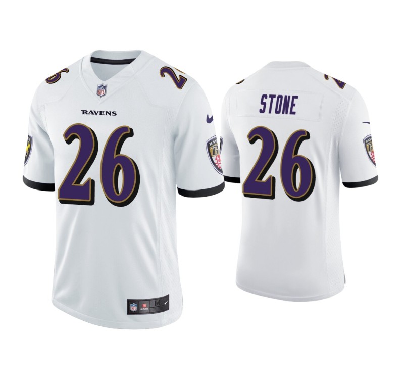 • Men Baltimore Ravens #26 Geno Stone Vapor Limited White Jersey