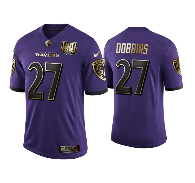 Men Baltimore Ravens #27 25th Anniversary J.K. Dobbins Purple Golden Limited Jersey