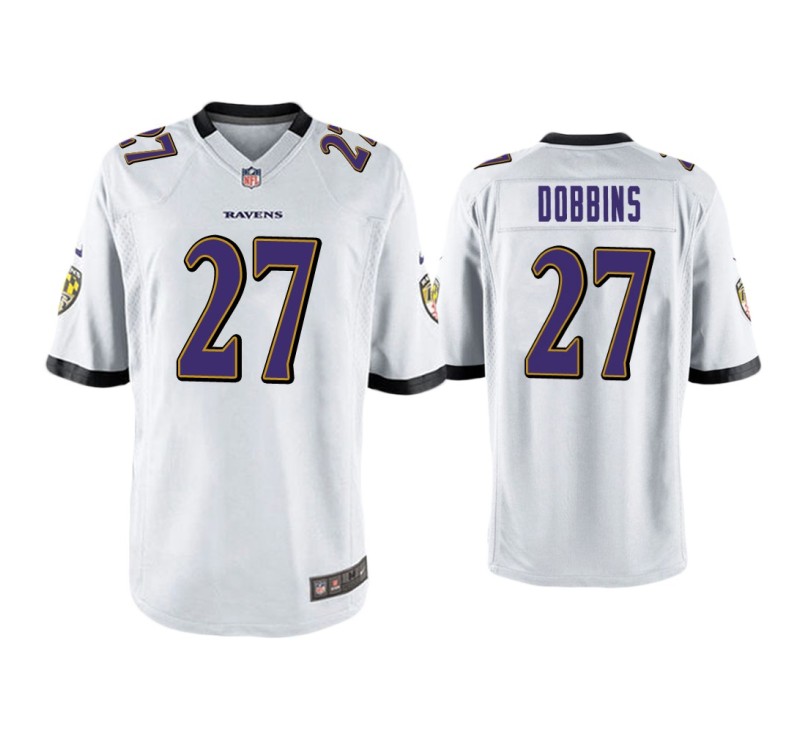 Men Baltimore Ravens #27 J.K. Dobbins White 2020 Draft Game Jersey
