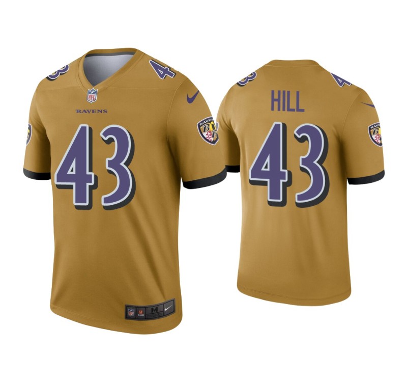 Men Baltimore Ravens #43 Justice Hill Gold Inverted Legend Jersey