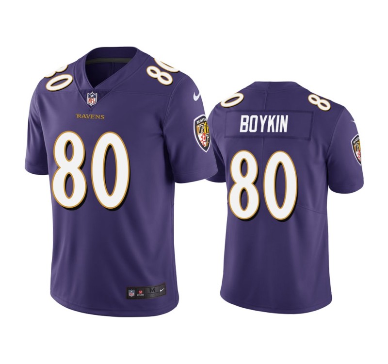 Feel confident this season cheering on your team in the Men Baltimore Ravens #80 Miles Boykin Purple Draft Vapor Limited Jersey. It features a comfortable polyester design with quality Baltimore Ravens and Miles Boykin embroidered graphics that will quickly make this Miles Boykin Jersey one of your favorites.
