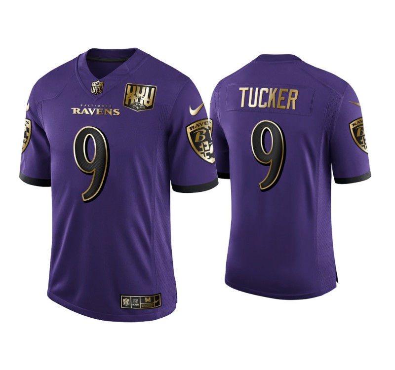 Men Baltimore Ravens #9 25th Anniversary Justin Tucker Purple Golden Limited Jersey