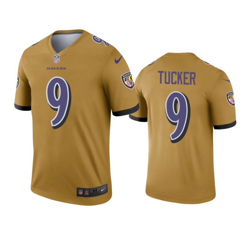 Men Baltimore Ravens #9 Justin Tucker Gold Inverted Legend Jersey
