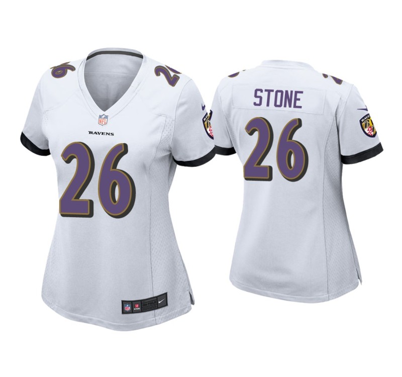 Women Baltimore Ravens #26 Geno Stone White Game Jersey