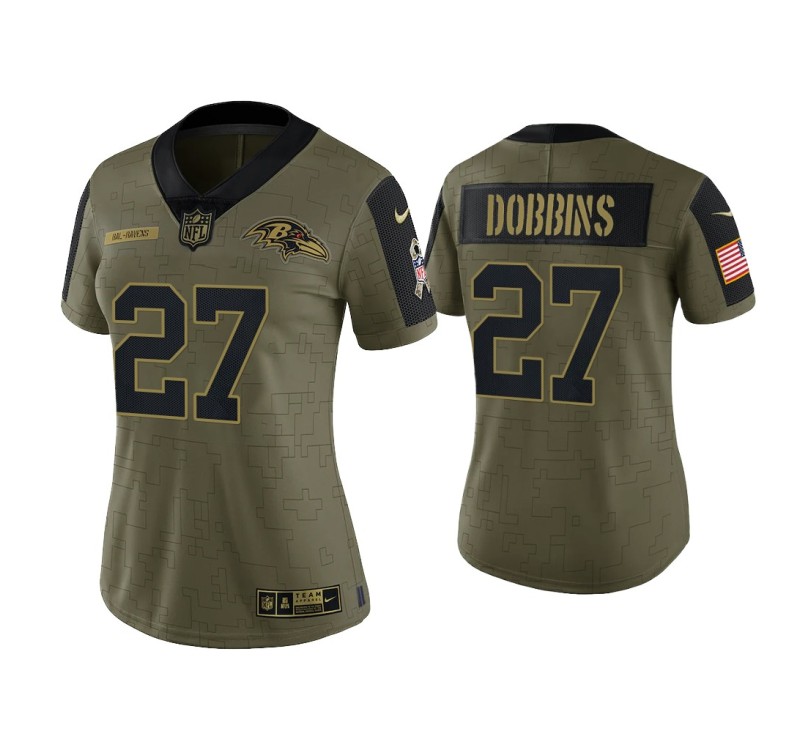 Women Baltimore Ravens #27 J.K. Dobbins Olive 2021 Salute To Service Limited Jersey