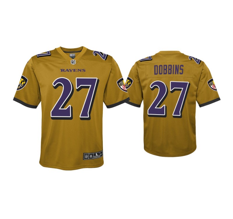 Youth Baltimore Ravens #27 J.K. Dobbins Gold Inverted Game Jersey